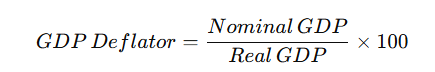GDP 디플레이터는 다음과 같이 계산됩니다: